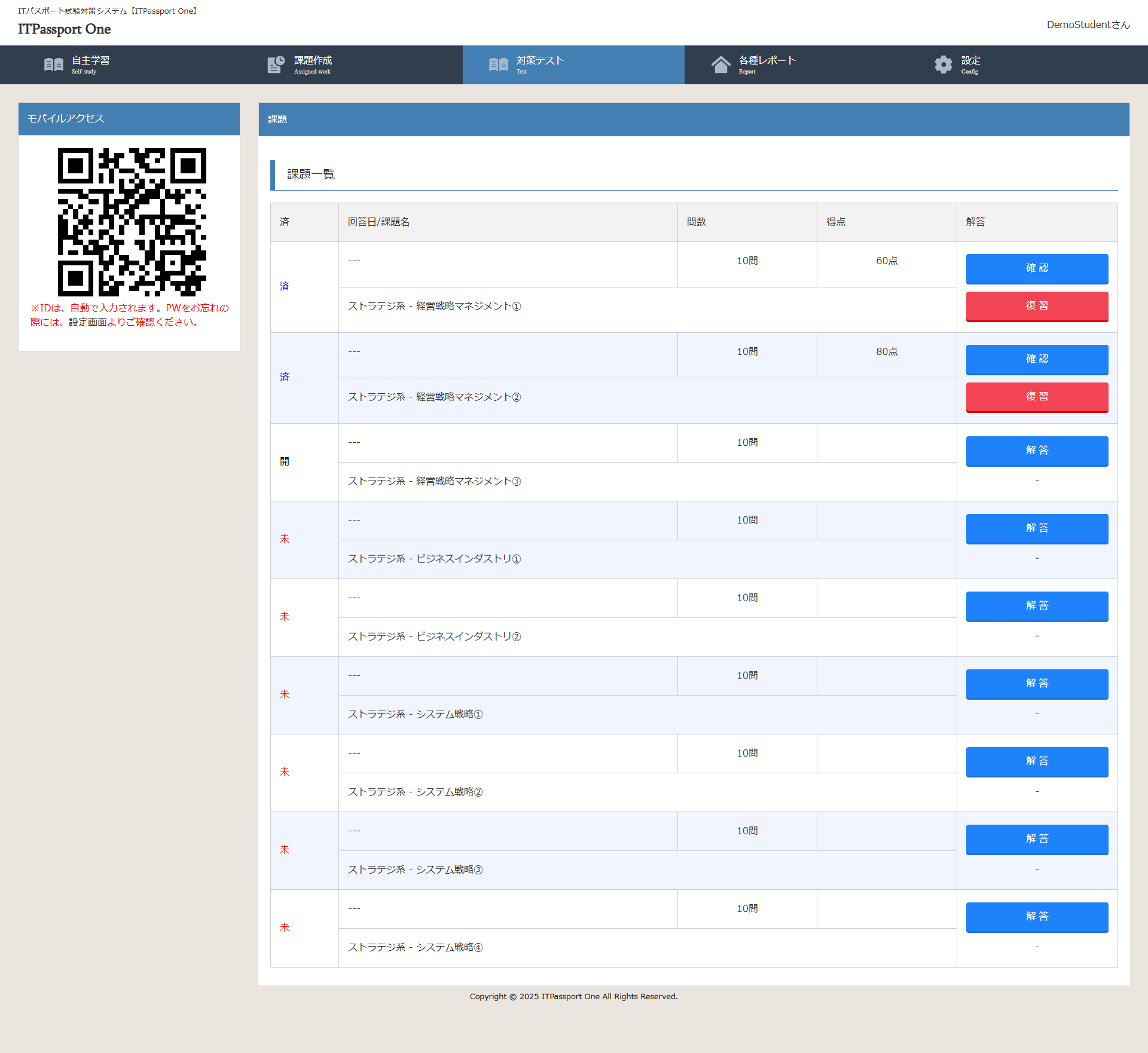 自主学習 / 課題作成 / 対策テスト